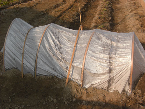 そこで対策として、ビニールハウスを作成し、寒さを凌げるように改良しました。