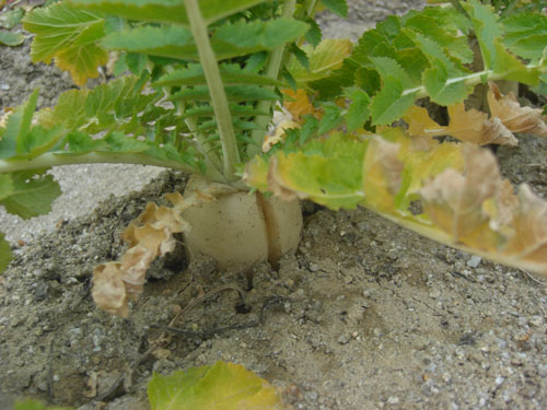 畑の大根が一本縦にひび割れました。