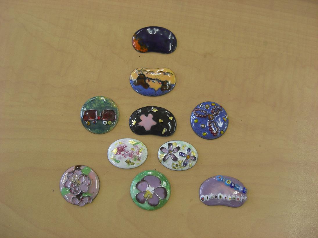 内容としては、いつも七宝焼・ガラス工芸の材料を購入しております「クラフト藤田」さんより講師2名を派遣し、『七宝焼』を教えて頂きました。